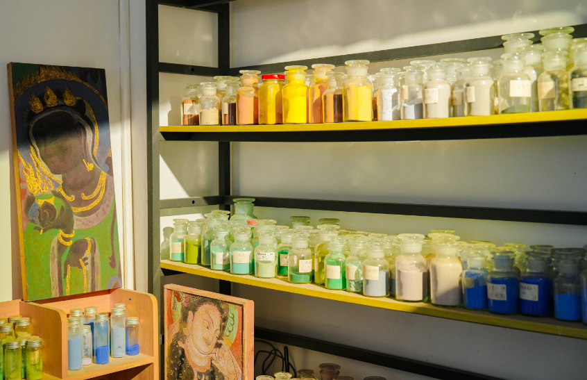 “遵照这一古法来制作色彩的矿物是有限的。”何韵旺说,随着矿物颜料在现代创作中的普及,有限的矿产资源有可能面临被过度开发导致的资源稀缺,然而矿物颜料难以满足数量庞大的现代绘画创作群体需求。