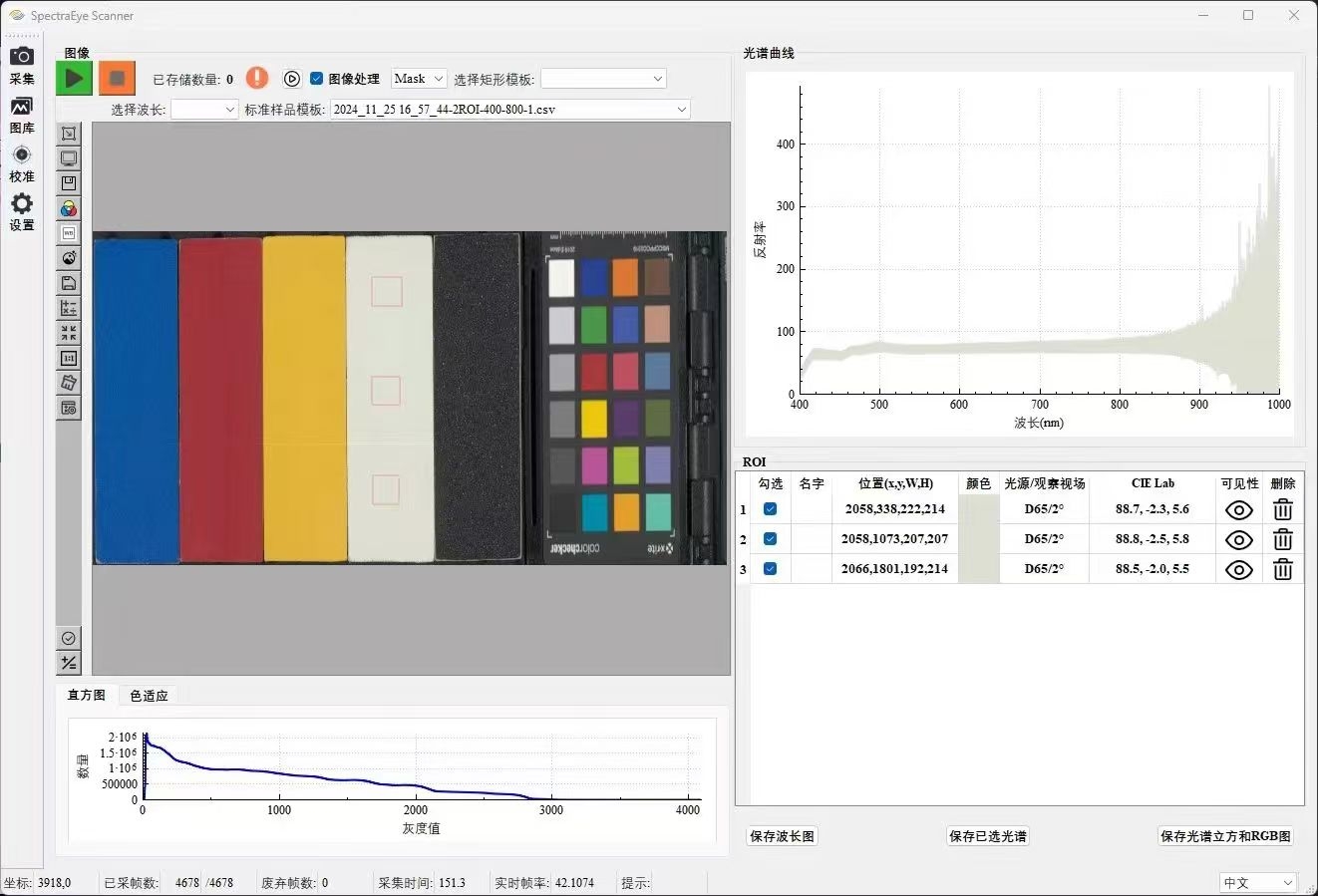 该团队运用国际领先的超光谱分光测色设备,对复原的五色色样进行高光谱分辨率、高空间分辨率的数据检测。把五色样本转化为RGB、CMYK、Lab等颜色标准的数据化色值,便于进一步开展色彩外观的色相、明度、饱和度分析,并为其后续的色彩匹配、色彩传播、质量管控等应用工作提供了坚实基础。