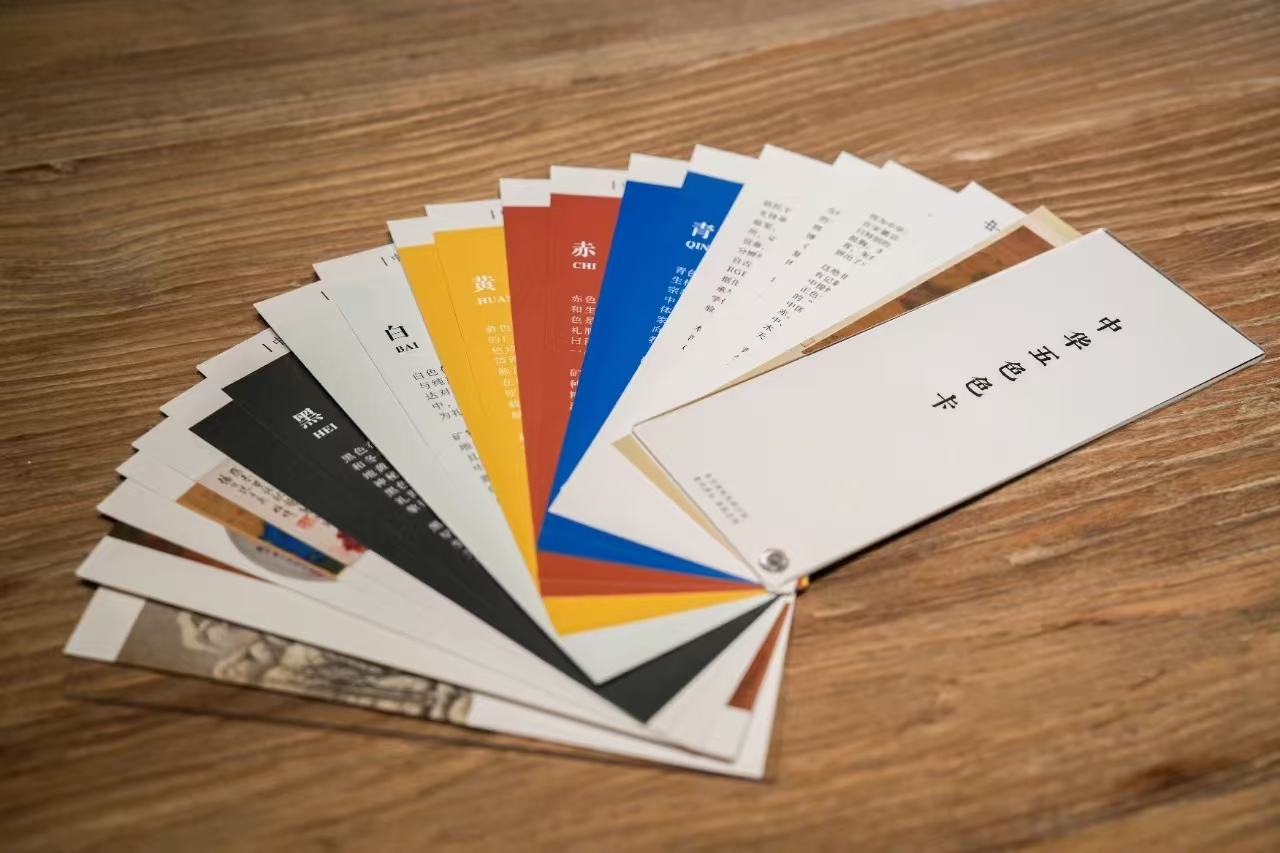 “传统五色向RGB/CMYK等应用系统转化时,时常会遇到兼容性问题。”宋文雯解释道,比如五色色卡中的黑色,其所用矿石颜料含有晶粒结构,能呈现具有闪烁感、颗粒感的独特肌理,但在CMYK印刷色彩中难以体现这一质感。