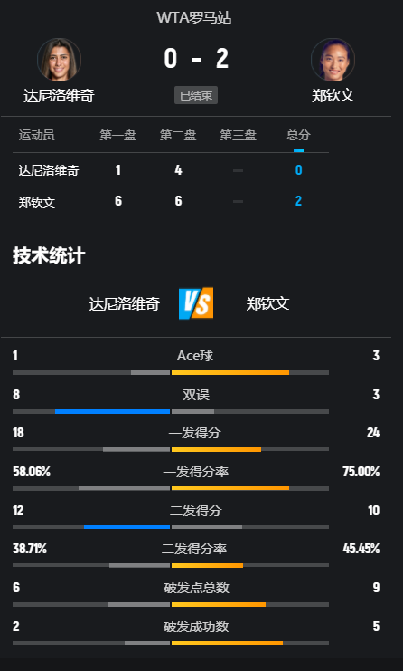 战胜达尼洛维奇 郑钦文迎今年红土首胜