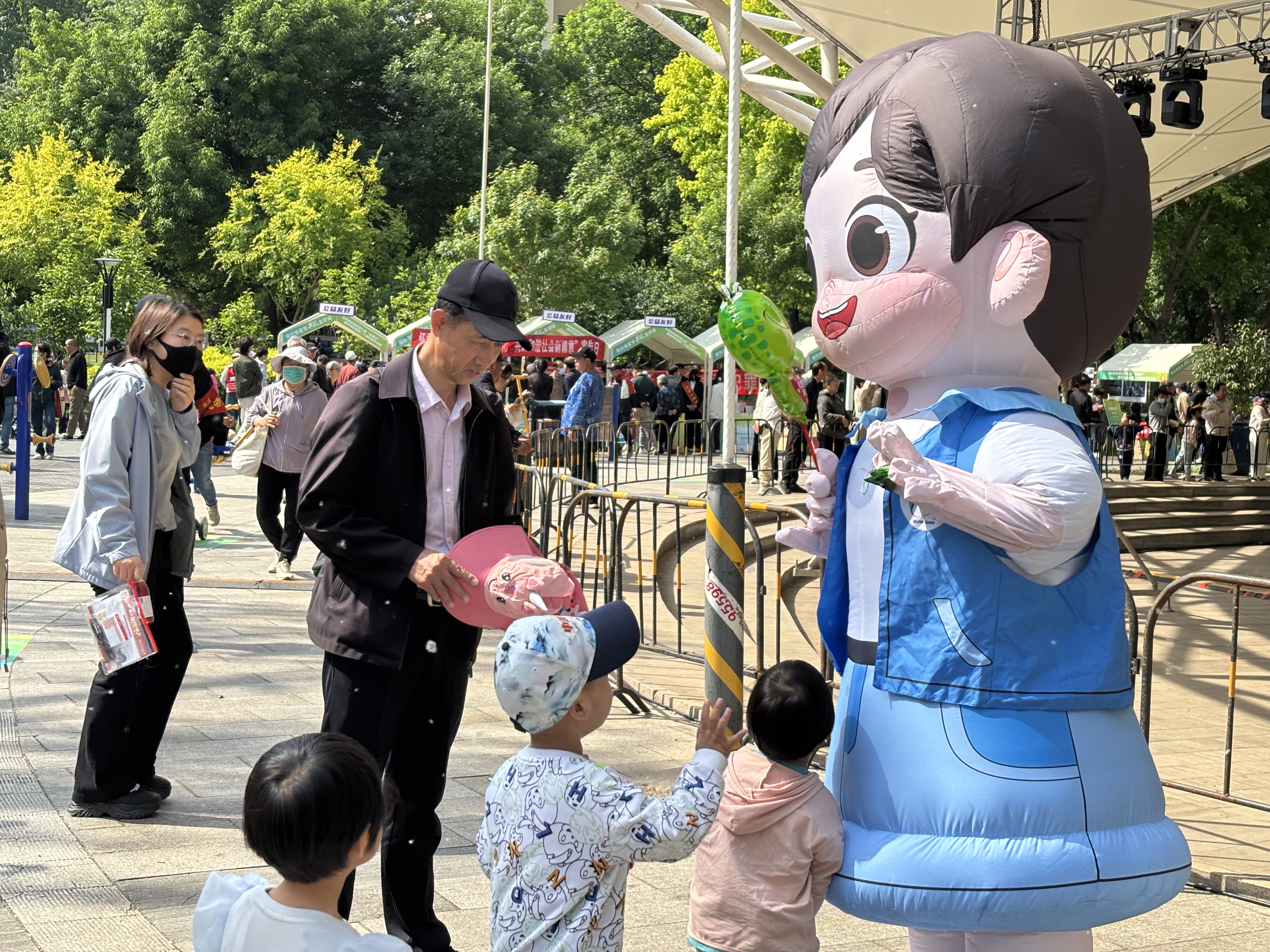 活动现场,小朋友和街道吉祥物互动。新京报记者 赵利新 摄