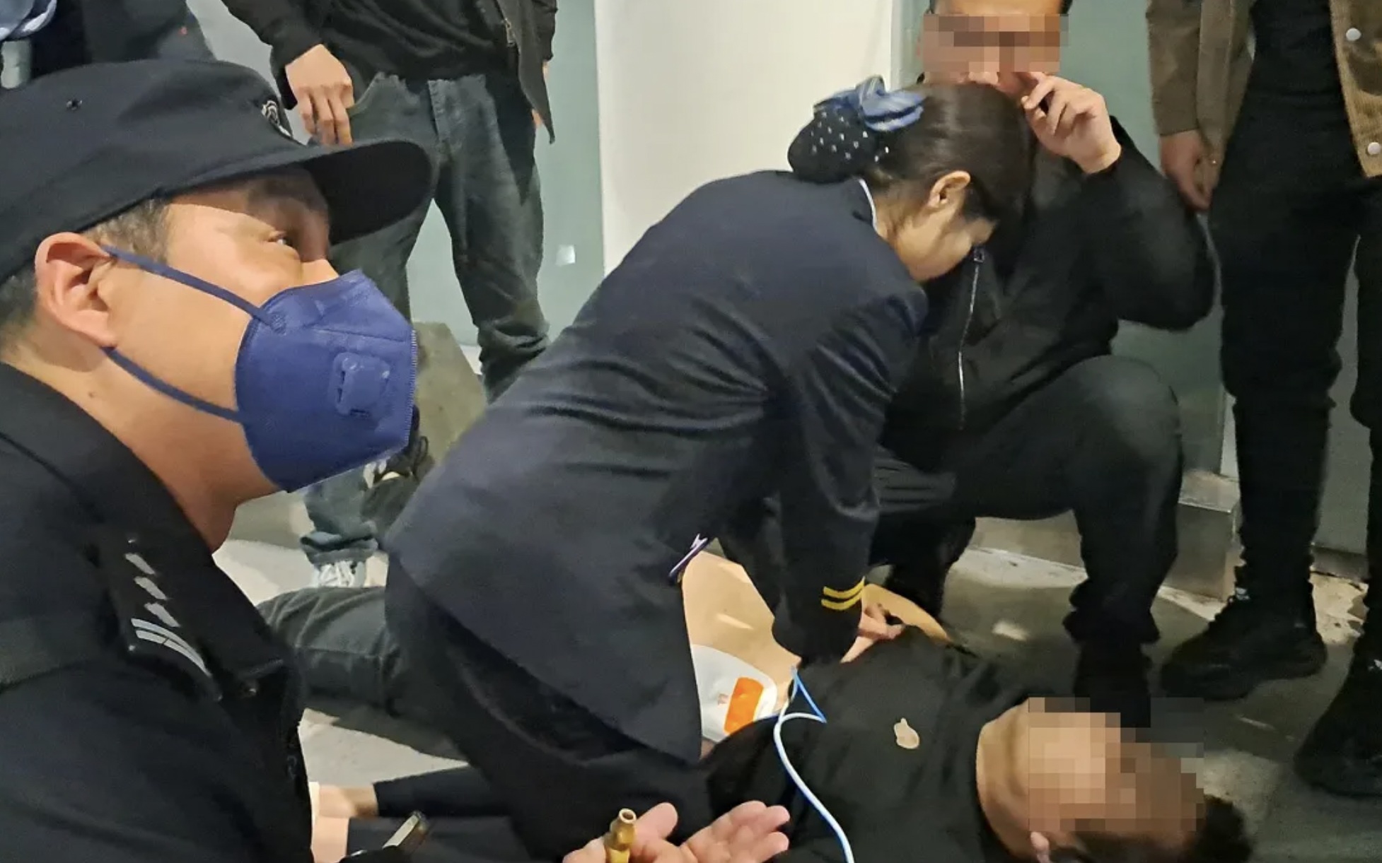 到达现场后,李艳发现乘客无意识,便立即将AED电极片贴在乘客身上,并提醒人群远离,设备语音提示“建议电击”,她果断按下除颤按钮。乘客还未清醒,李艳又跪地实施两轮胸外按压,直至120急救人员赶到。