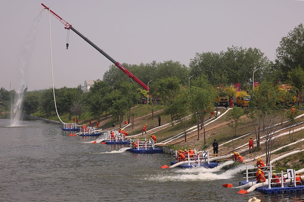 小型单元组进入比赛场地。小型抢险单元优点是体积小、重量轻、操作简单,在一辆车上就能实现小型抢险单元设备整合,同时水泵能放入雨水箅子中,能够提前铺设管道,及时抽升,减少对道路交通的影响,快速解决平面道路积水问题。