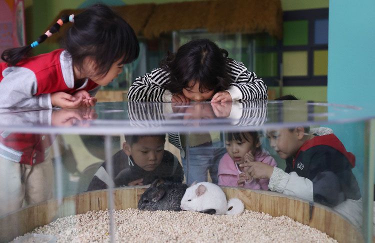 幼儿园萌宠乐园,小朋友被小动物深深吸引。《中华人民共和国学前教育法》对幼儿园的管理和保育教育活动提出了较高要求,在“保育教育”中强调坚决纠正幼儿园“小学化”等行为。