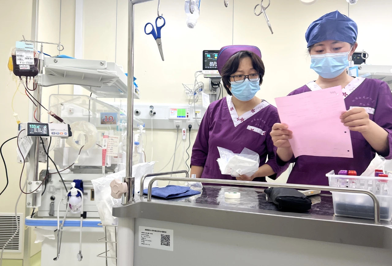 儿科护士正在核对患儿输血信息。 图源:北京积水潭医院