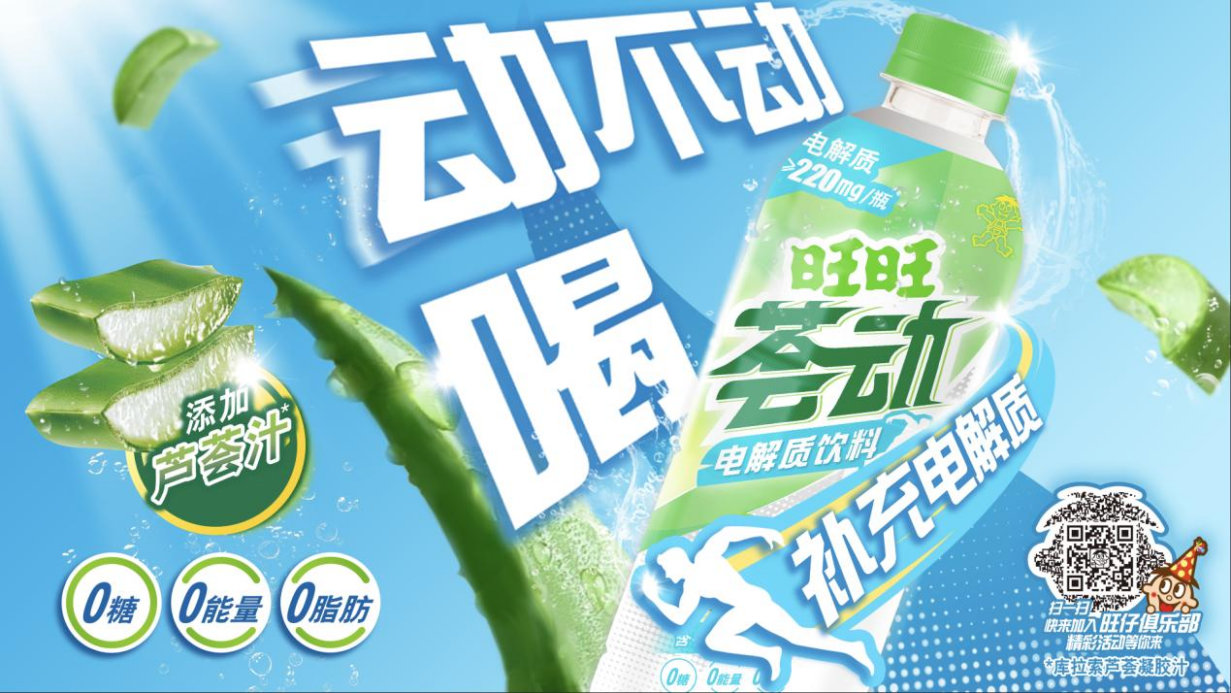 与此同时去年在接管旺旺饮品版块更是面临传统快消品巨头瓶颈,旺旺集团总经理蔡旺庭正以“救火队长”的姿态,带领饮品业务从亏损深渊中杀出一条血路。通过打造“畅饮铺“概念,以及打造针对高强度工作人群的“996 疲劳”,功能饮料“劲爆”创新添加玛咖粉;和打造电解质水“荟动”,则主打真实芦荟汁成分,满足其补水与健康需求. 通过让邦德咖啡、旺旺O泡等旺旺饮品实现年营收双位数增长,成为行业黑马。