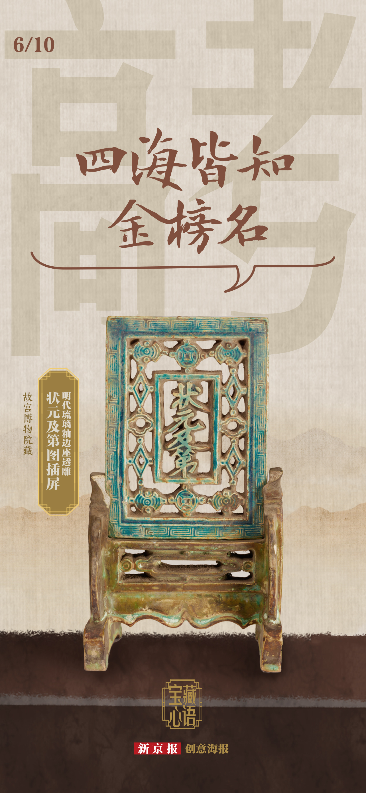 琉璃釉边座透雕状元及第图插屏,明,长10.5cm,宽7.5cm,高18.5cm。
