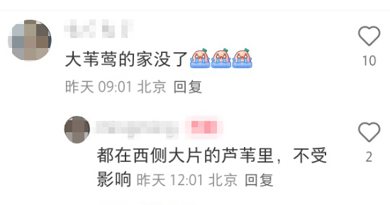有网友担心,朝阳公园北湖湖岸沿线部分芦苇割除,会让大苇莺等鸟类没有栖息地。社交平台截图