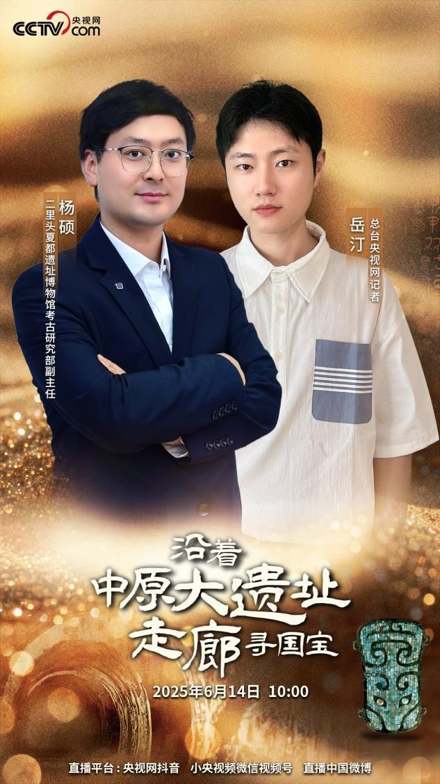 五千年文明长河奔涌不息,每一缕浪花都藏着华夏儿女的文化密码!无论你是历史爱好者、文化研究者,还是普通观众,6月14日上午10:00,一起锁定央视网抖音号、小央视频微信视频号、直播中国微博号,让我们相约这条跨越五千年的时空走廊,跟随直播镜头穿越五千年,在中原大遗址的字里行间,寻找属于自己的文化基因!