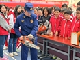 主会场开辟“基层应急能力建设区”,邀请7支市级应急志愿服务队伍围绕结绳实训、心肺复苏和AED使用、止血包扎训练、危险驾驶体验、水域激流、潜水、绳索救援装备展示等开展应急安全宣传和队伍风采展示。图为市民带孩子体验消防车。