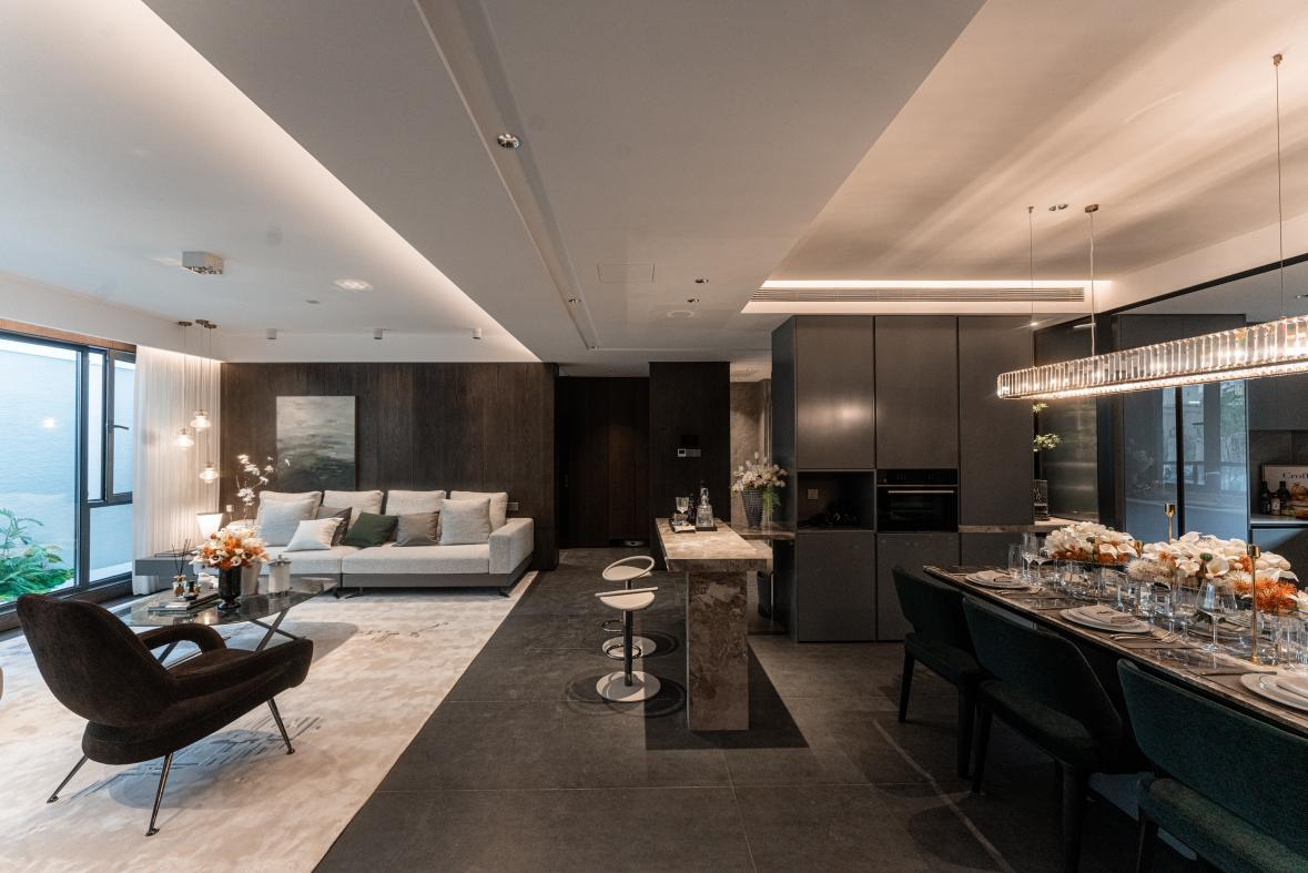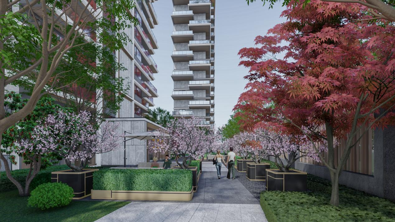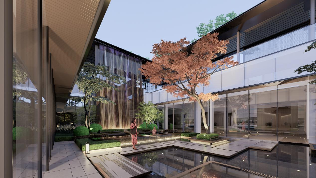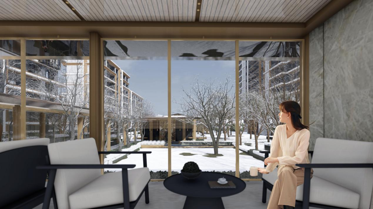 在社区景观层面,约35%的绿地率与"檐游之境"六重景观体系的组合,更是填补了区域高端社区的园林空白。酒店式大堂、风雨连廊、全龄活动区、共享会客厅等公共空间,让社区从居住容器升级为微度假场景。老人能在连廊里下棋,孩子在活动区玩耍,丈夫与妻子在会客厅喝咖啡,精准而有温度地演绎出层峯圈层的理想生活图景。