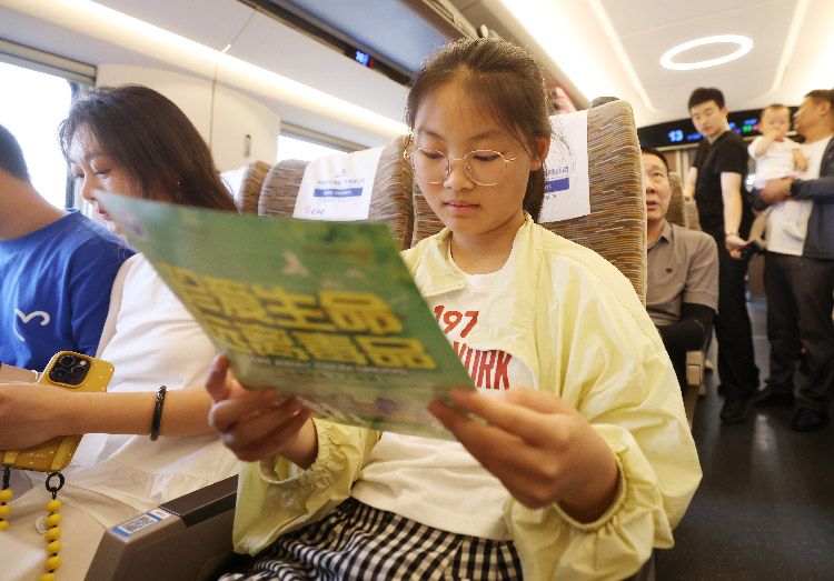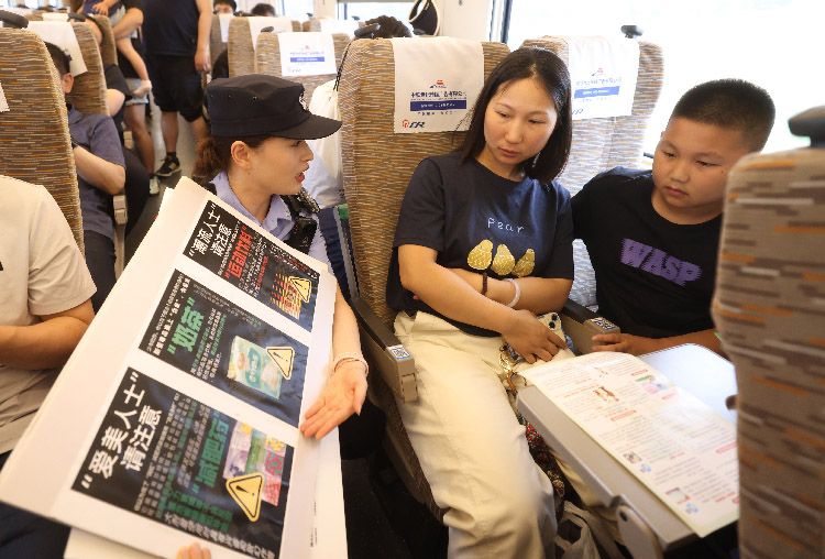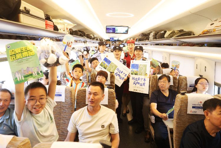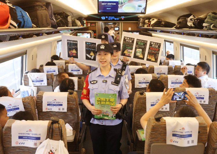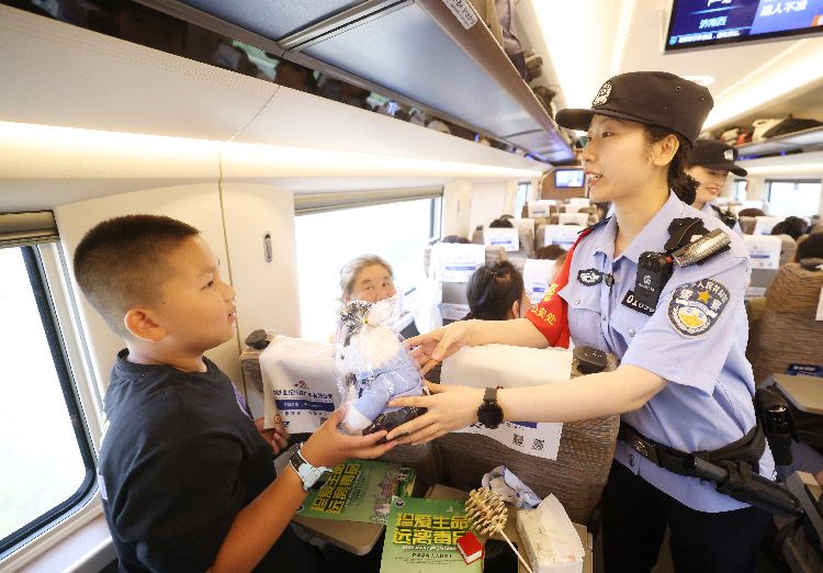6月25日,北京铁路公安处乘警支队联合刑事侦查支队、中国铁路北京局集团公司北京客运段高铁一队在北京南开往上海虹桥的G9次旅客列车上开展了禁毒宣传活动,向广大旅客宣传禁毒常识,警民携手共筑“识毒防毒拒毒”安全防线。