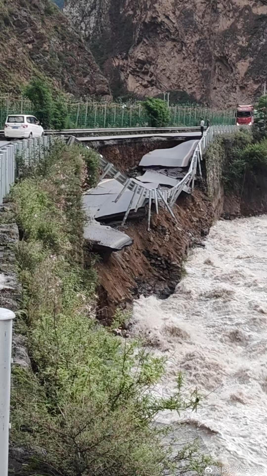 四川茂县一国道被冲刷致半幅路基垮塌约30米,无人员伤亡和车辆受损