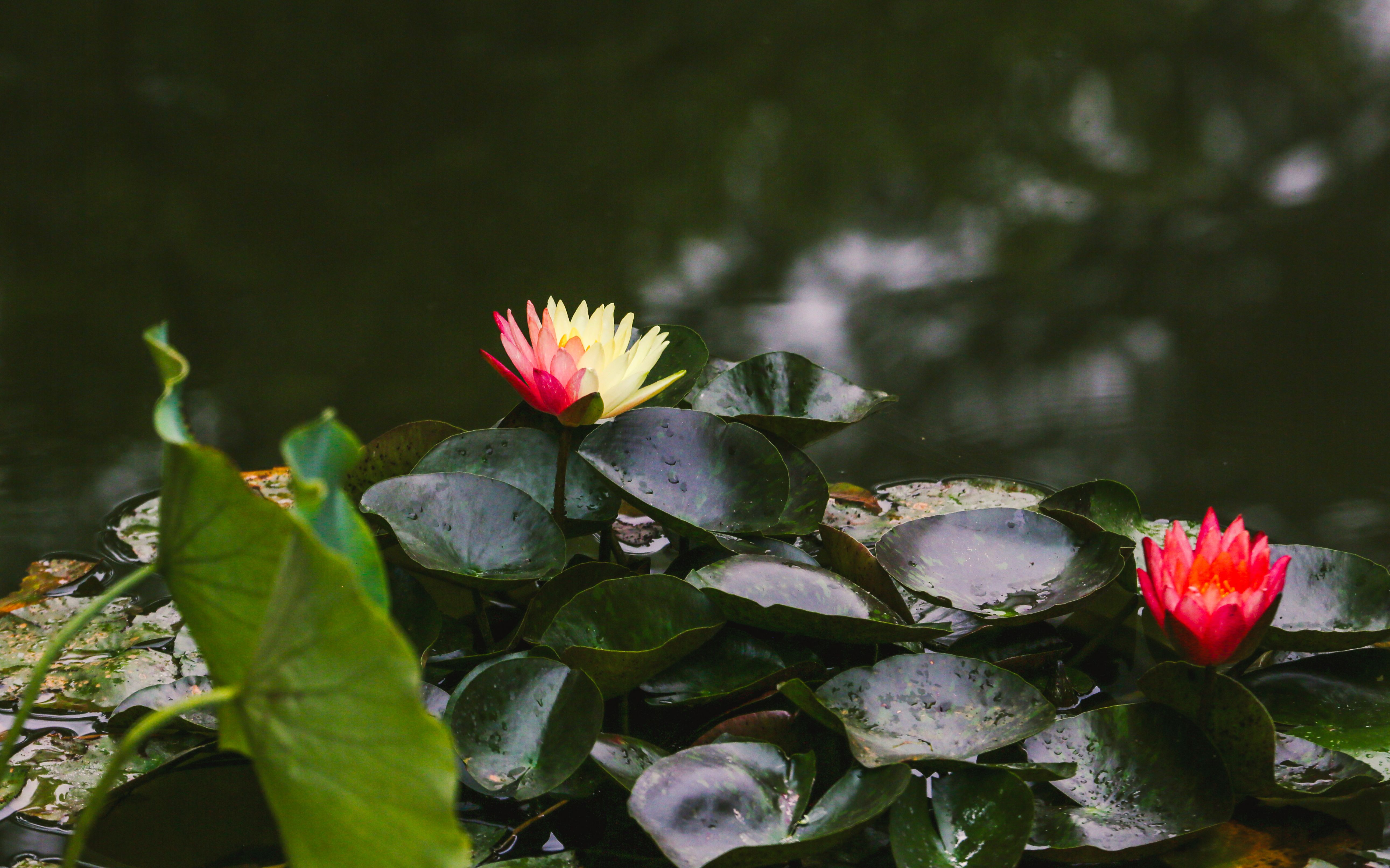 香山公园睡莲开出“隐藏款”,半红半黄“万维莎”绽放