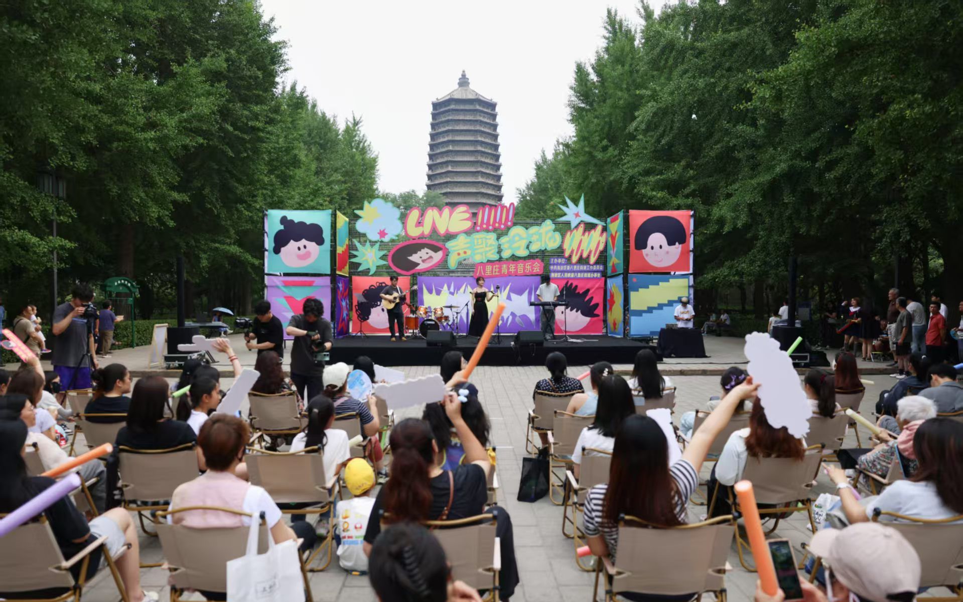 新京报讯(记者吴为)6月28日,北京市海淀区八里庄街道在玲珑公园举办“Live 声聚玲珑”青年音乐会,吸引了100余名青年参与。