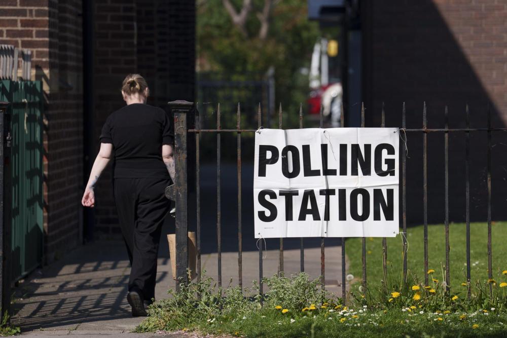 5月1日,在英国普雷斯顿,一名女子走向一家投票站。新华社发(乔恩·休珀摄)
