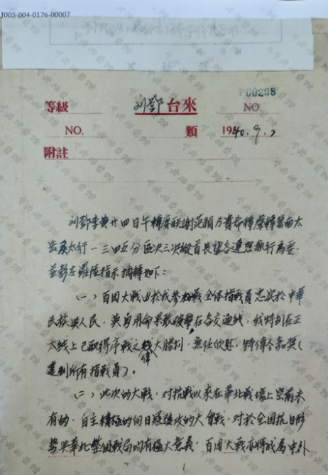 1940年9月2日,刘伯承、邓小平给各旅、军区电:嘉奖百团大战有功人员及作战部署