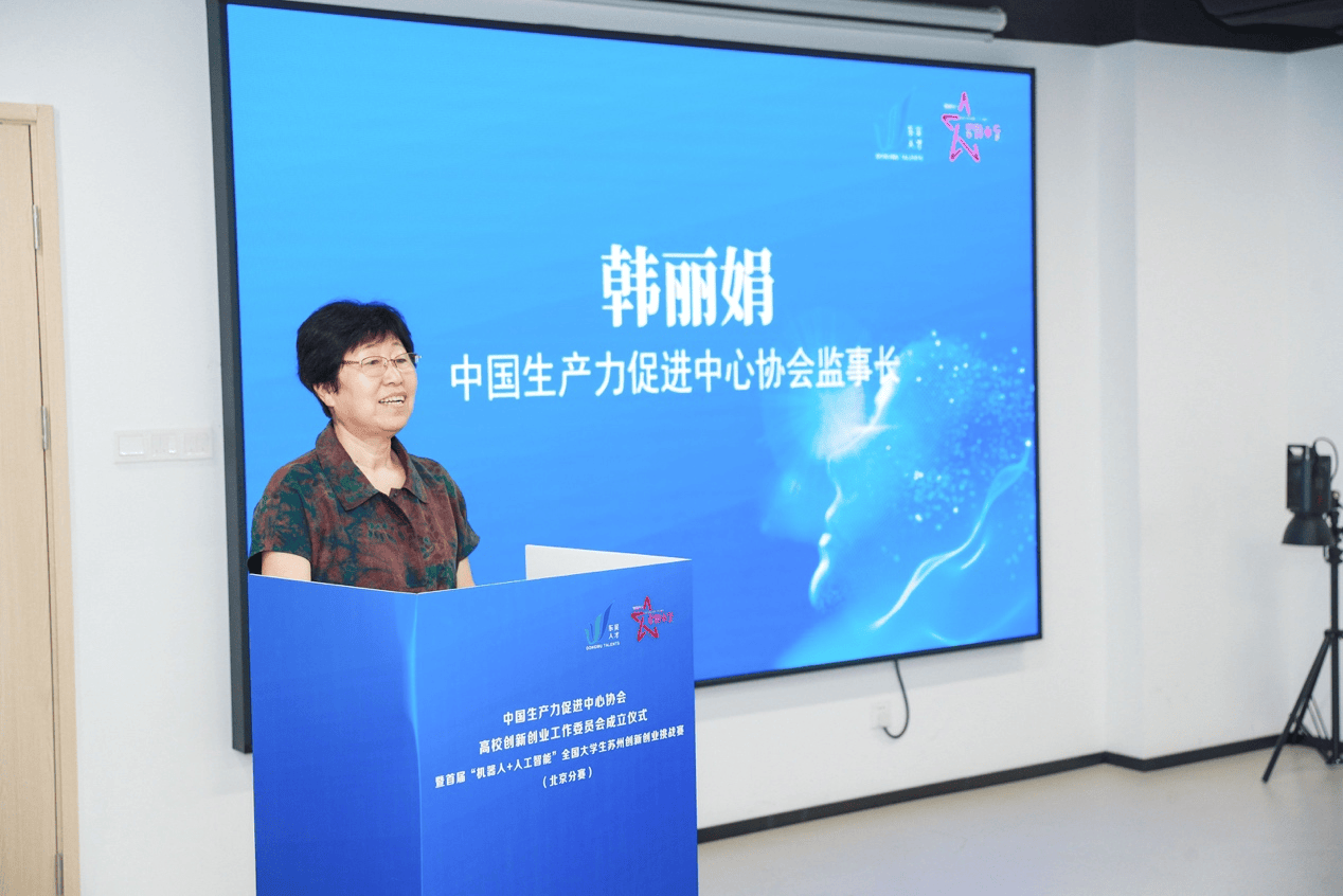 创新是引领发展的第一动力。活动伊始,中国生产力促进中心协会监事长韩丽娟致辞并宣读成立批复,宣布高校创新创业工作委员会正式成立。她在致辞中表示,机器人与人工智能的浪潮正在重塑未来,希望参赛者以赛促学,以创逐梦,既做仰望星空的思考者,更做脚踏实地的行动者。高校创新创业工作委员会将在政策对接、资源整合、孵化培育等方面提供全方位的支持,为大学生创新创业之路保驾护航。