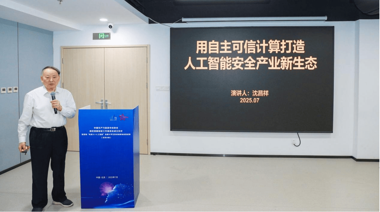 主旨发言环节,活动有幸邀请到中国工程院院士、信息系统工程专家沈昌祥院士。他围绕“用自主可信计算打造人工智能安全产业新形态”展开分享,深度剖析了自主可信计算在网络安全中的应用前景。他指出,网络安全的实质是计算科学问题,而自主可信计算可以大幅降低人工智能安全风险,经过长期军民融合攻关应用,自主创新安全可信体系已经形成并开启可信计算3.0时代。未来,完备的可信计算3.0产品链将形成巨大的新兴产业空间。
