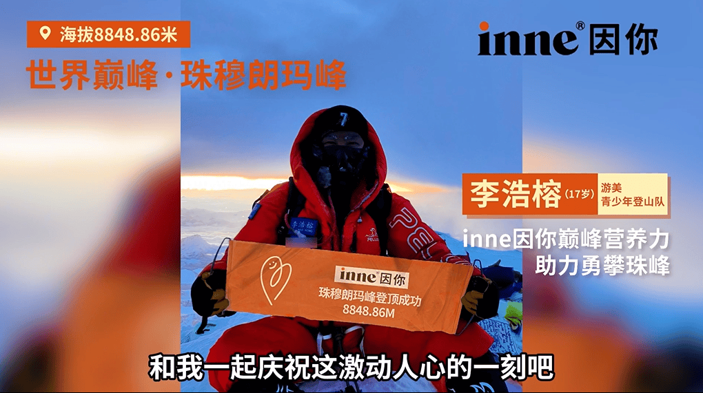 2025年5月,inne以科学营养助力17岁少年李浩榕成功登顶珠峰