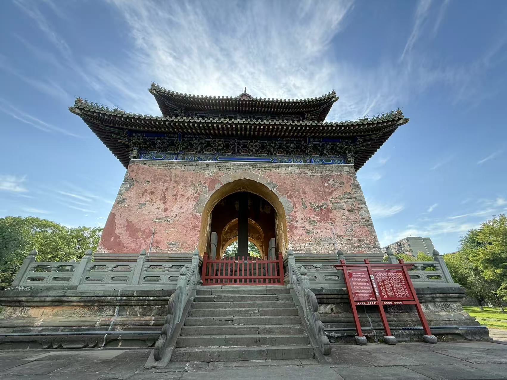 武当山玉虚宫内的碑亭,不少居民在碑亭附近打武当拳。新京报记者 张建林 摄