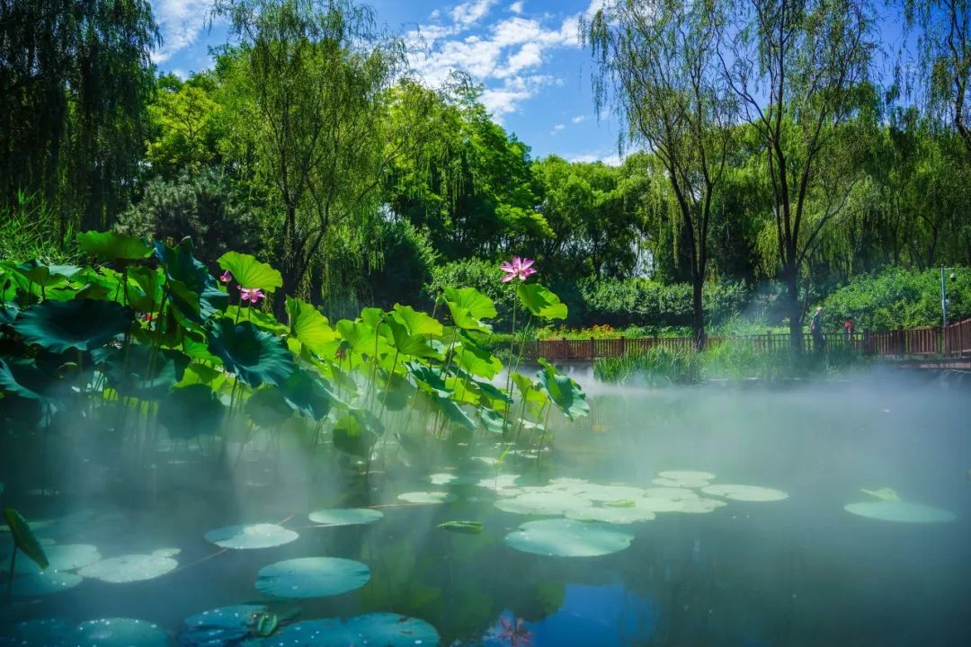 海淀公园雾森系统开启。图片来源:北京海淀微信公众号