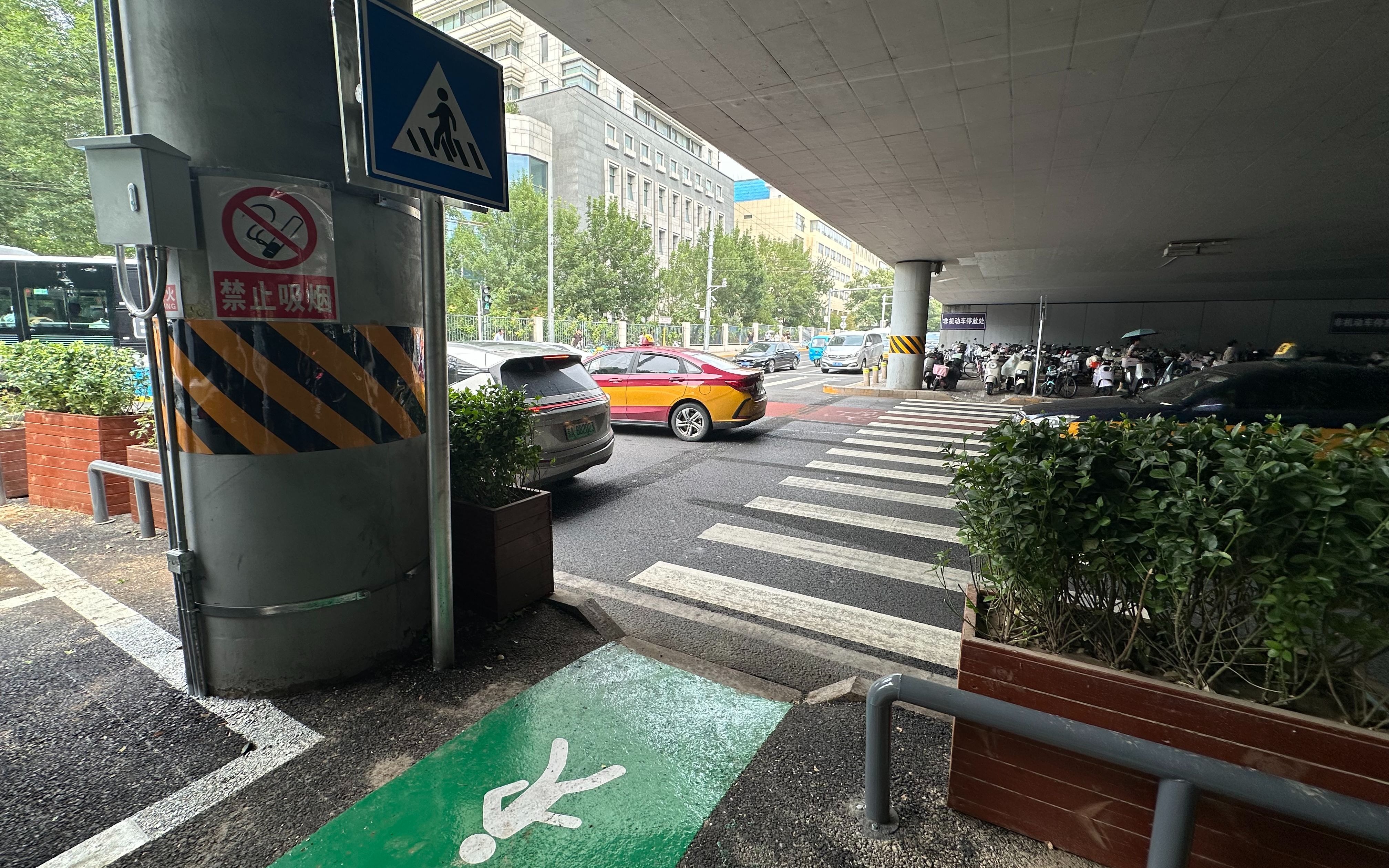 在安全保障方面,广安门桥下停车场增设人行专用通道,并在路口开辟人行专用出入口,将行人引导至场外人行横道等候区,实现人车分离。