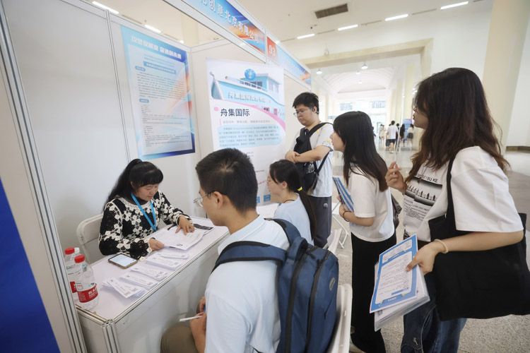 高校毕业生排队递交简历。