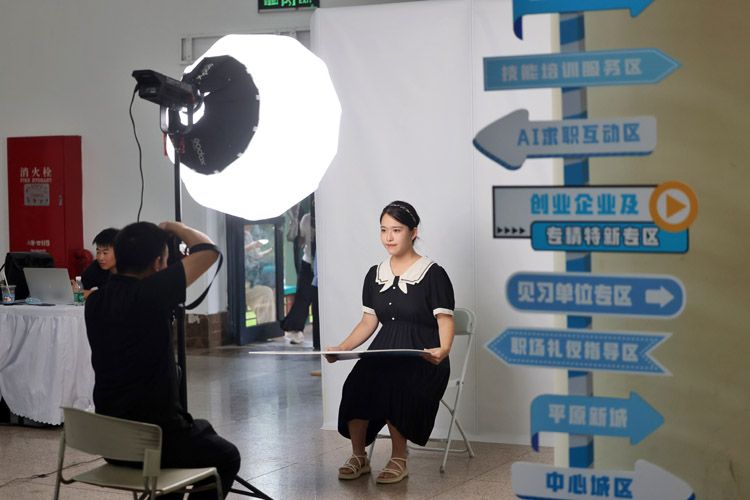 招聘会现场为高校毕业生提供免费拍摄证件照服务。