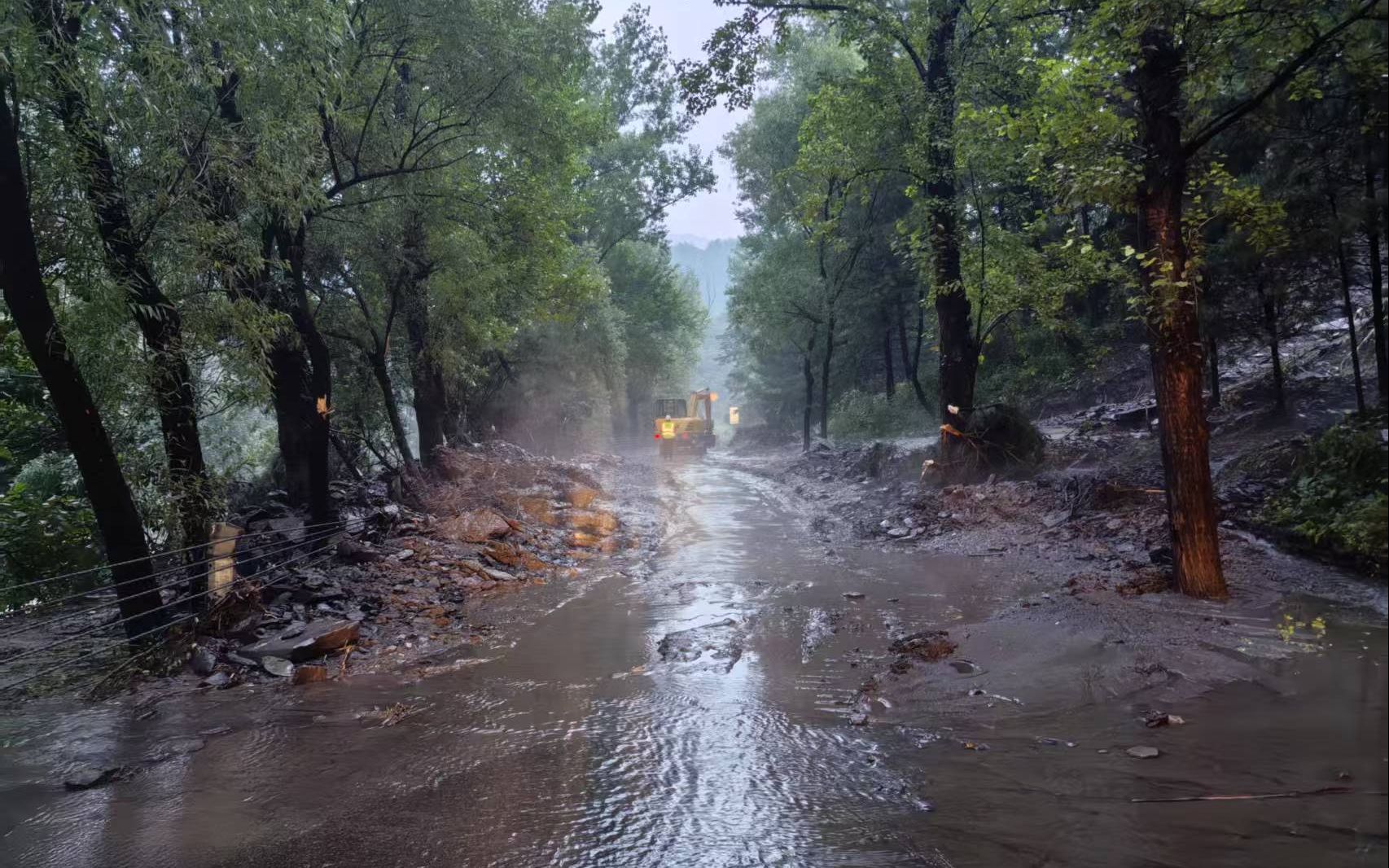 受连续强降雨影响,怀柔区三条道路封闭抢修