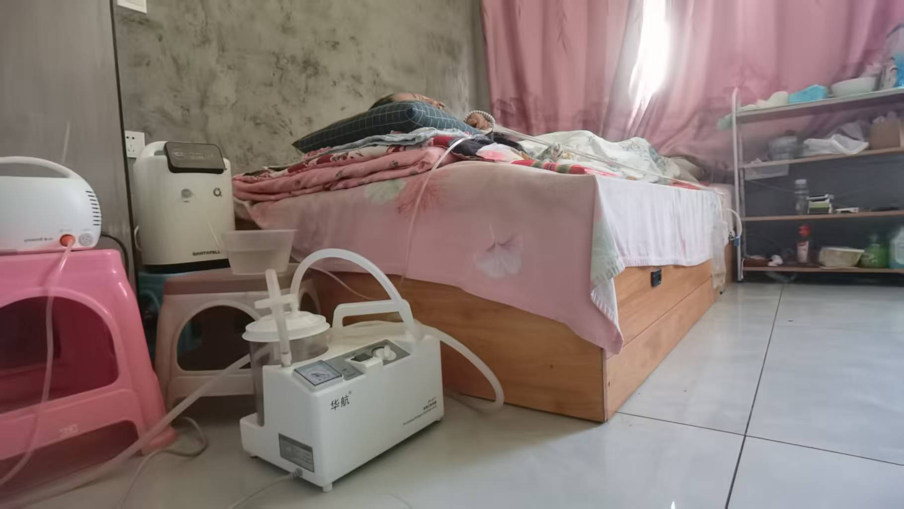 到医院后发现是脑出血,当时就做了手术,术后回家,一直插着呼吸机。家里还有吸痰机、雾化机等,24小时需要通电。