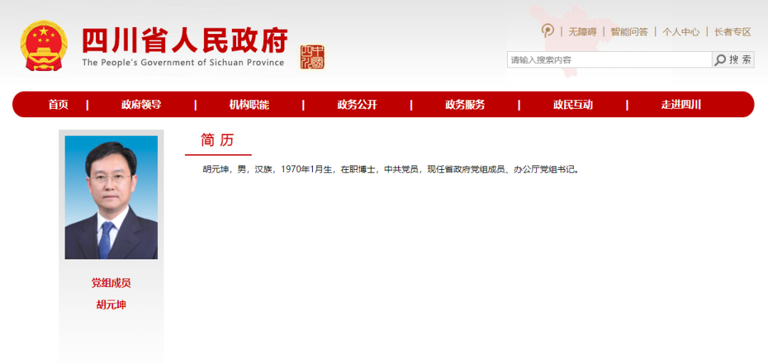 四川省人民政府网站最新信息显示,胡元坤已任四川省人民政府党组成员、办公厅党组书记。
