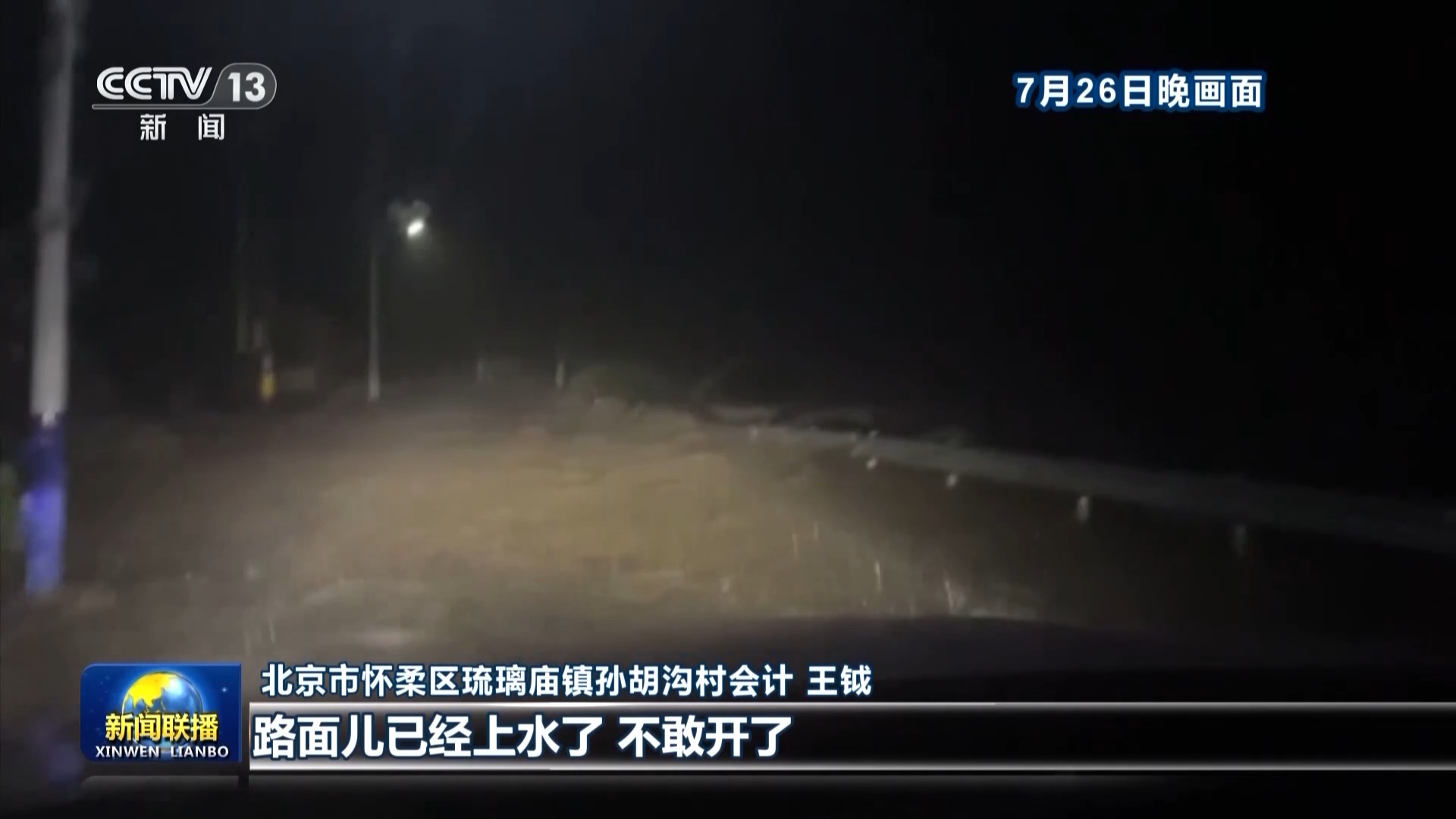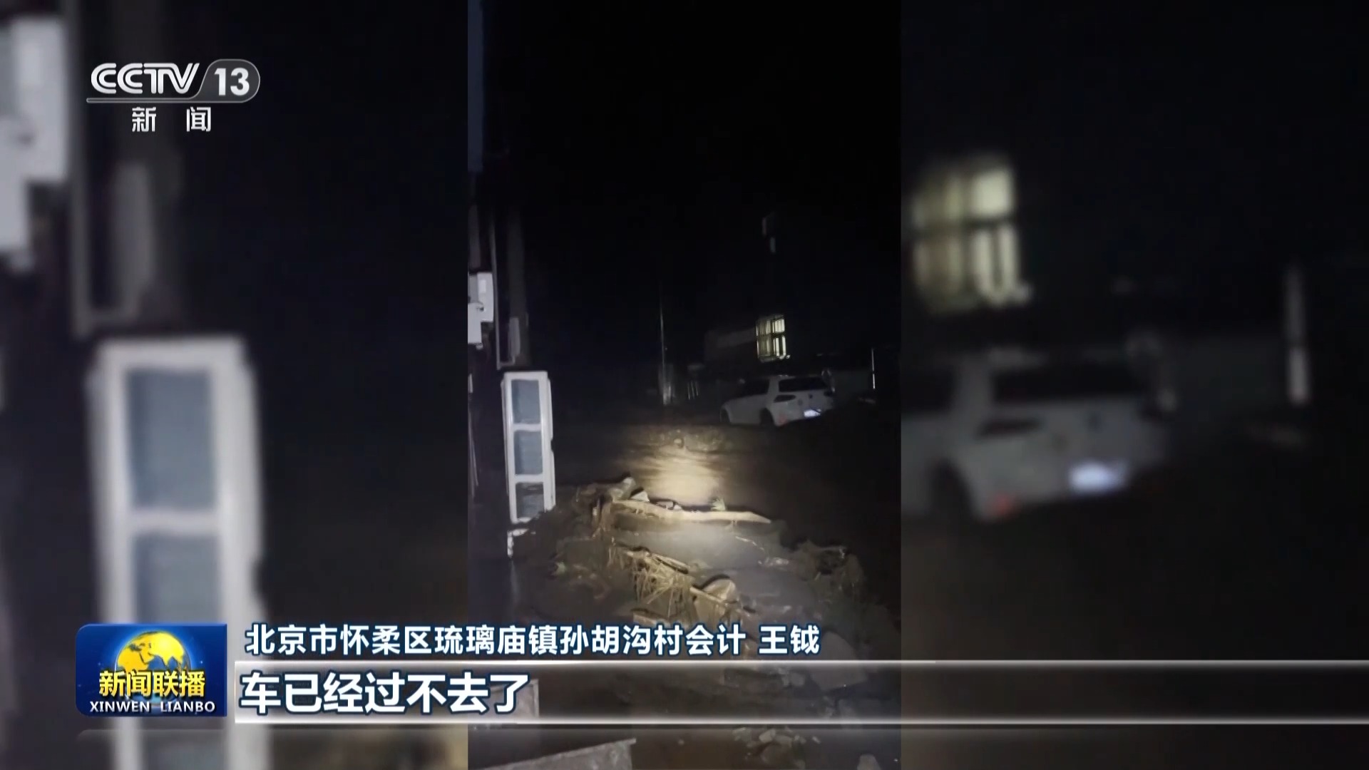 北京市怀柔区琉璃庙镇孙胡沟村会计 王钺:车已经过不去了,她准备蹚水过去。她老公蔡永章同志不放心,说他自己去,(尹春燕)书记说不行我必须跟着去。