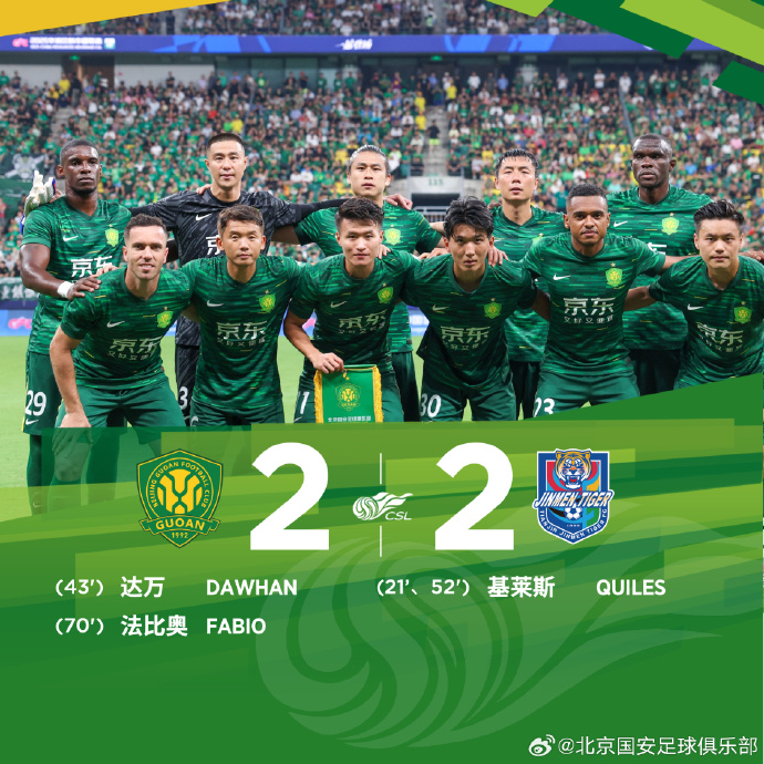 最终,北京国安主场2-2战平天津津门虎。