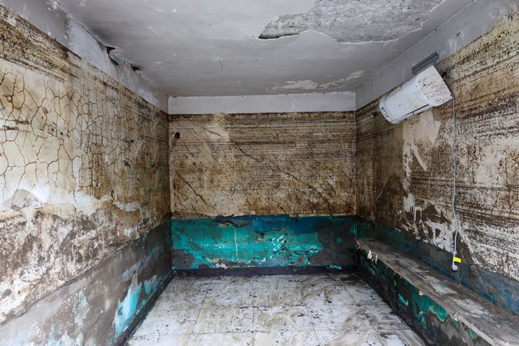 8月4日,冯家峪镇冯家峪村,房屋里留下清晰的水位痕迹。