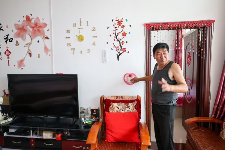 8月4日上午,密云区冯家峪镇西庄子村,村民展示家里已经通电。