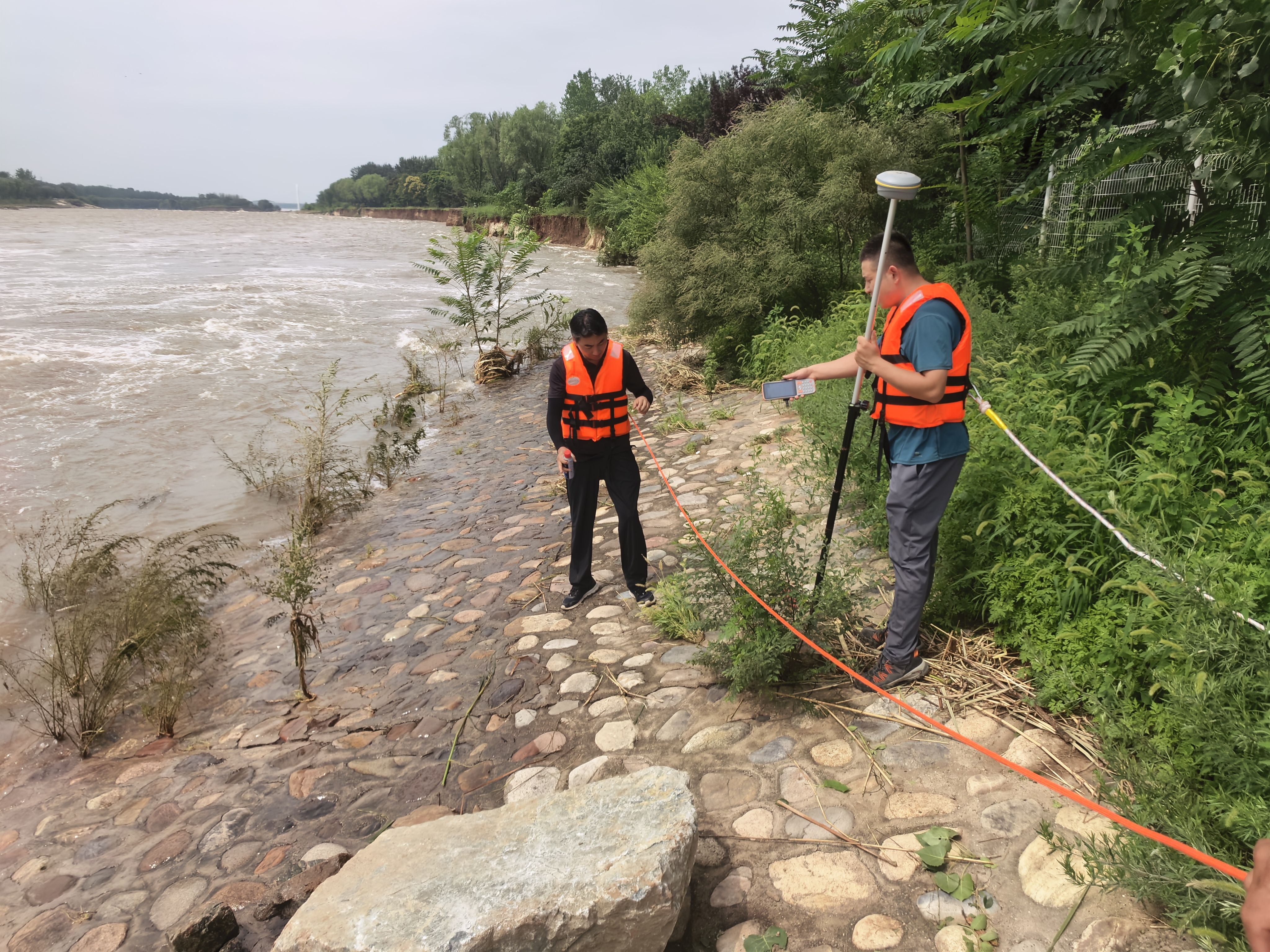 洪痕调查组由管理处张怀斌、王星、张武来、张立功组成,并联合北京市水利规划设计研究院的两名工作人员一起测量。工作组分工合作,张怀斌等掌握河道水文、地形的变化,精准定位关键洪痕点位,并进行清晰、规范的现场标识。设计院的工作人员则运用高精度RTK定位设备,对标识点位进行厘米级坐标与高程数据采集。