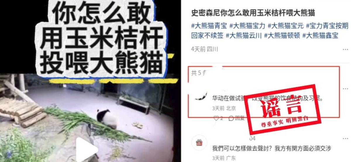 “华盛顿动物园玉米秆代替竹子做改变大熊猫饮食结构实验”系谣言