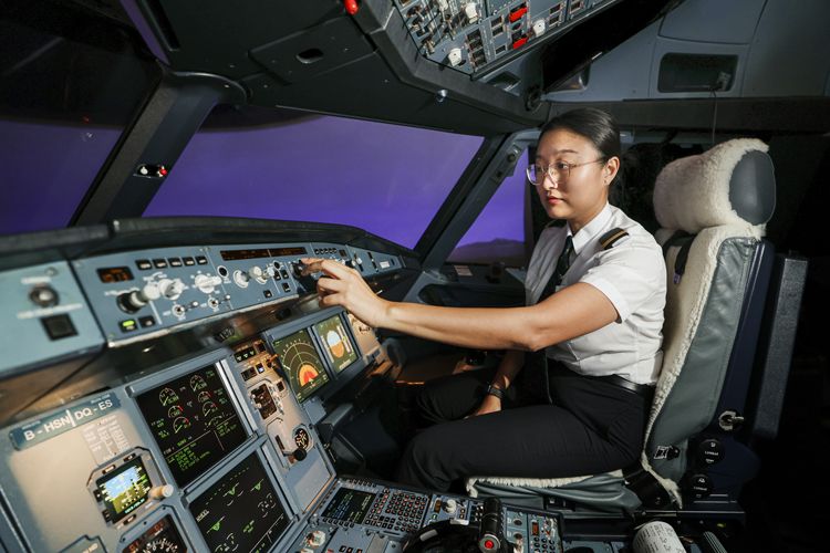 午间,香港东涌的公寓里,廉荦仔细整理好笔挺的飞行员制服。拖着飞行箱,她步行五分钟抵达公交站。通勤巴士载着她驶向机场,窗外是她百看不厌的上班路风景。四个月前,这位曾经的文科女生与空乘,首次以二副机师的身份,亲手将空客A350送上云端,执飞洲际航线。