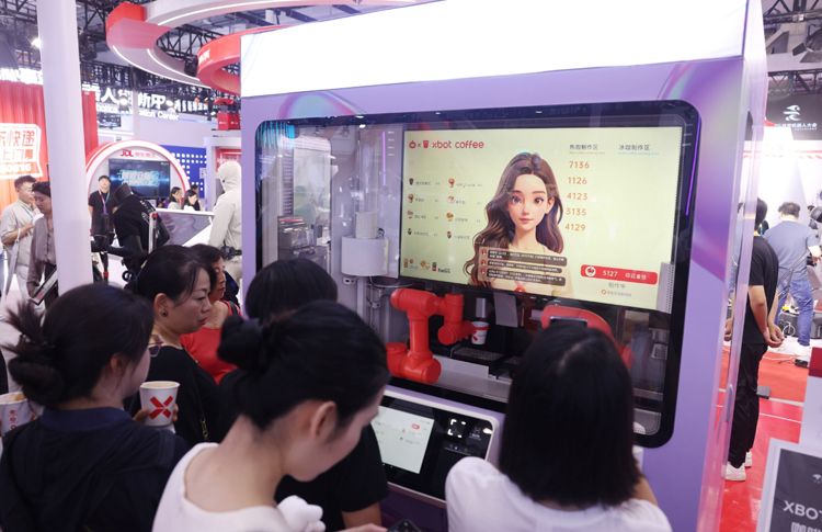 观众品尝咖啡制作机器人的“手艺”。