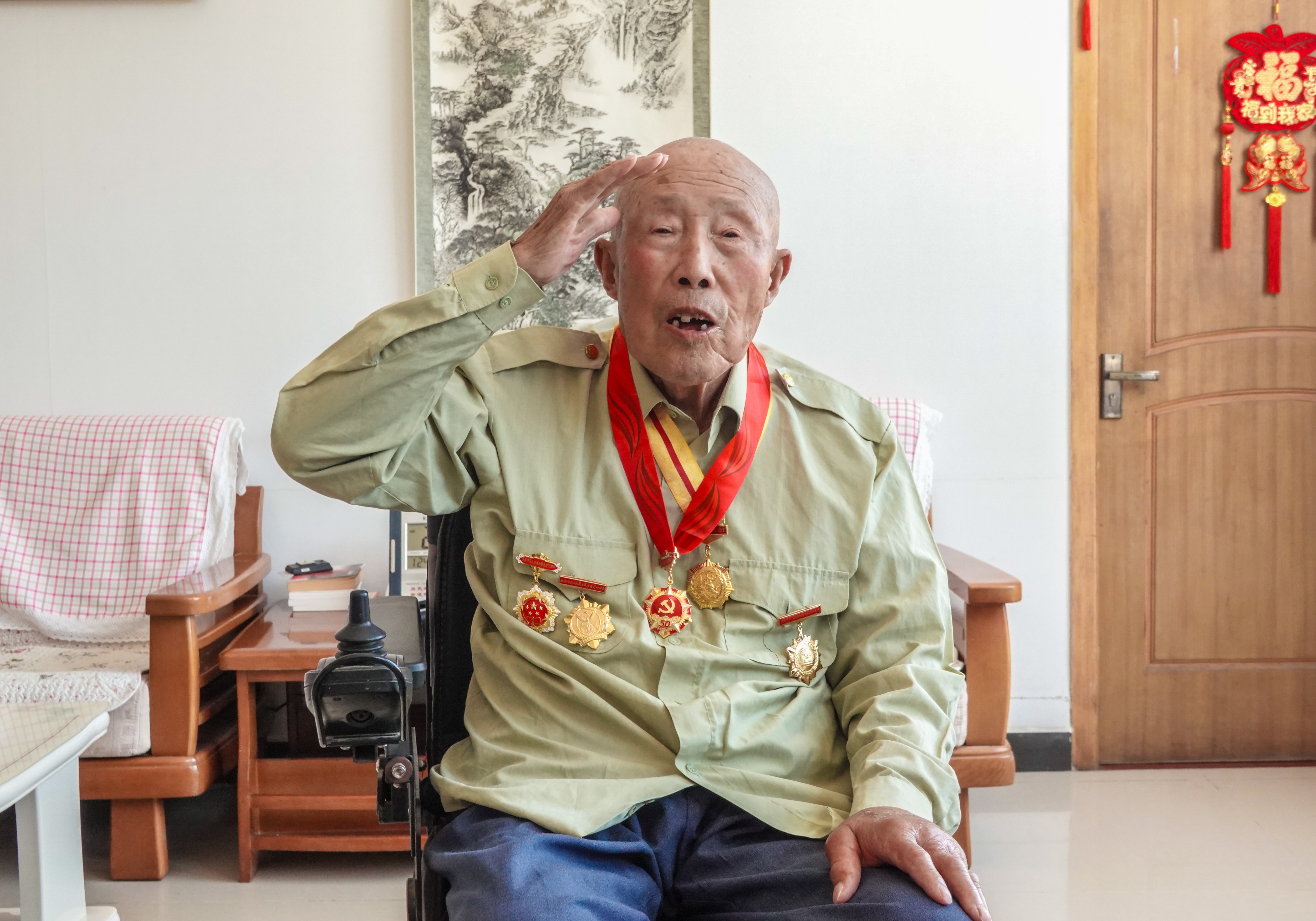 在冀东军区,他靠4颗手榴弹在佟辛庄伏击战中打响自己在抗战中的第一仗,炸死日寇,自己左脚却被掷弹筒砸伤,老乡用毛驴驮他去养伤。最刻骨的记忆,定格在攻打张镇炮楼——战士们身披湿棉被冲锋,组长翟连河却把年龄最小的刘福田“往后扒拉”。一声枪响,刘福田亲眼看见子弹击中翟连河头部。“他用他的命换了我的命。”这份无处报恩的遗憾,成了他一生的隐痛。