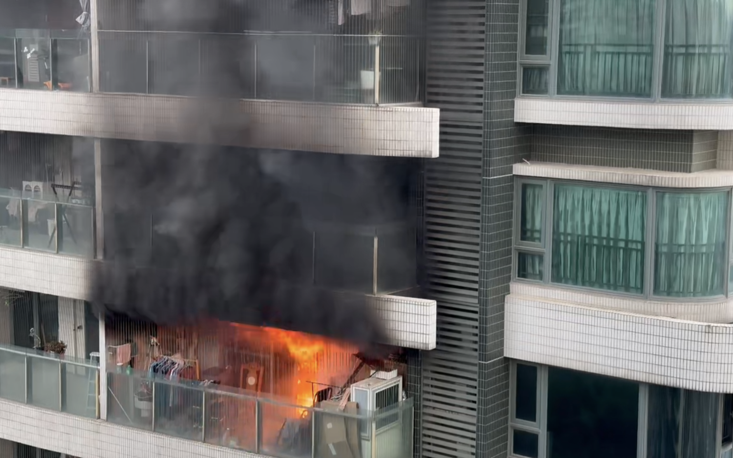 隔壁楼着火。 受访者供图