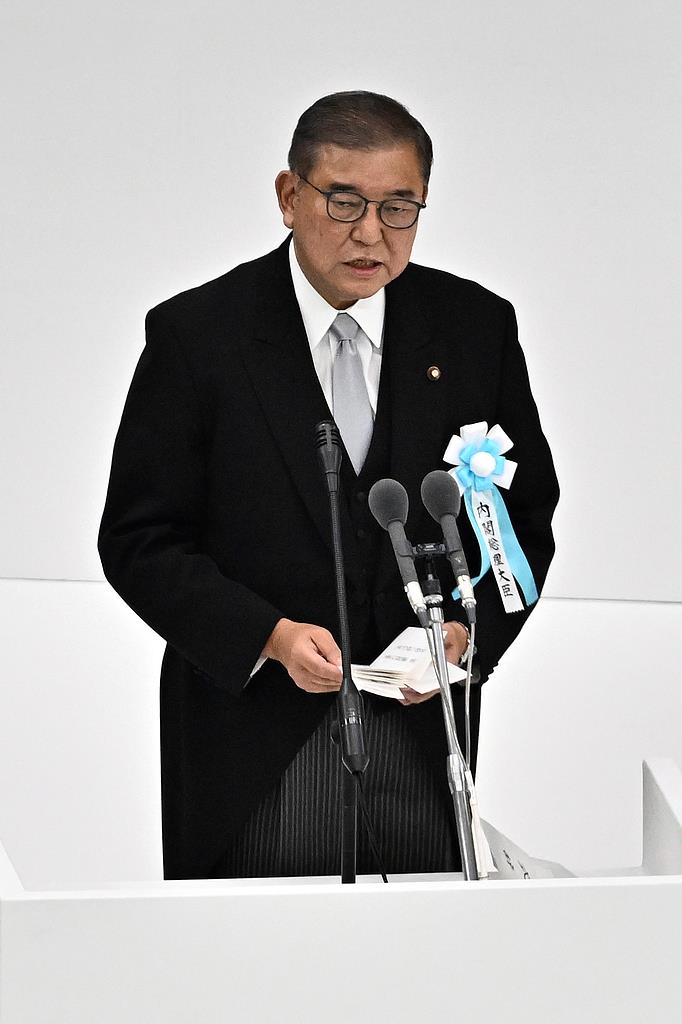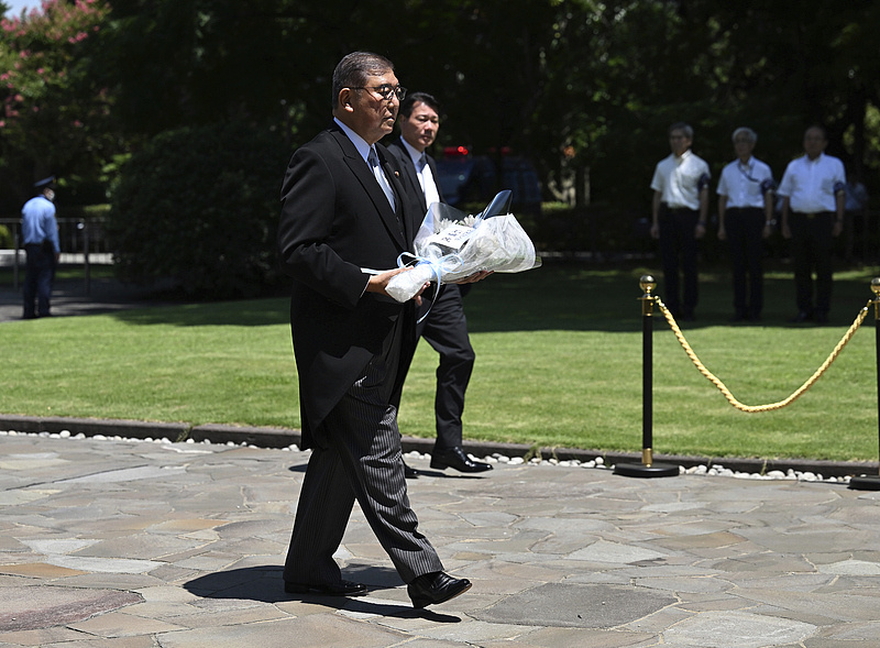 在出席日本政府组织的“全国战殁者追悼仪式”前,石破茂先前往东京千代田区的千鸟渊公墓献花哀悼。千鸟渊战殁者公墓收存超过数十万具第二次世界大战期间死于海外、身份不明的日本人尸骨,其中主要是军人。