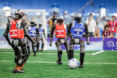 8月17日,在2025世界人形机器人运动会足球5v5终极对决中,清华大学火神队(红方)1比0战胜HTWK Robots+Nao Deviels联队(蓝方)勇夺冠军。