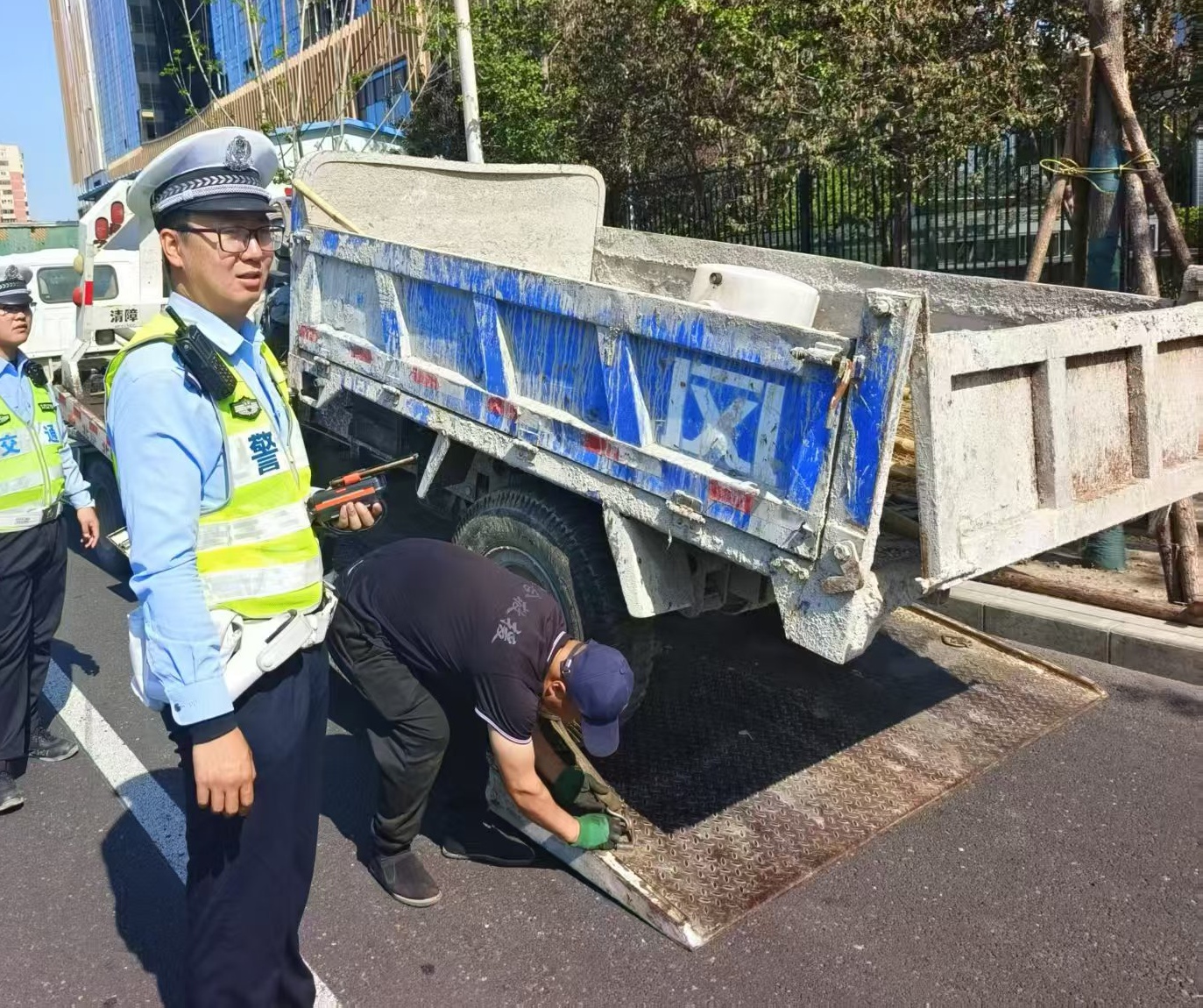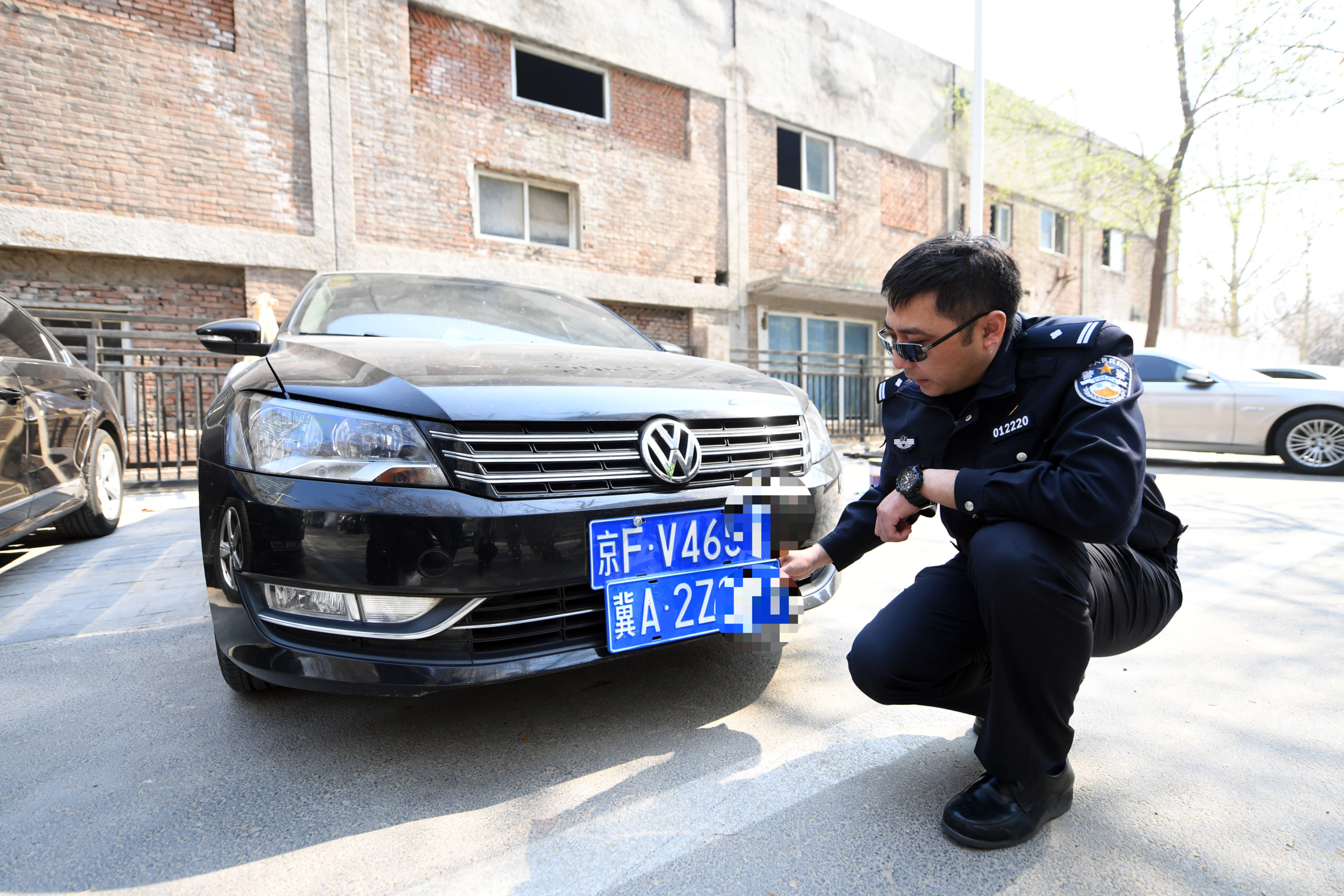 交警谢征,能够“裸眼”识别真假号牌。 图源:北京警方