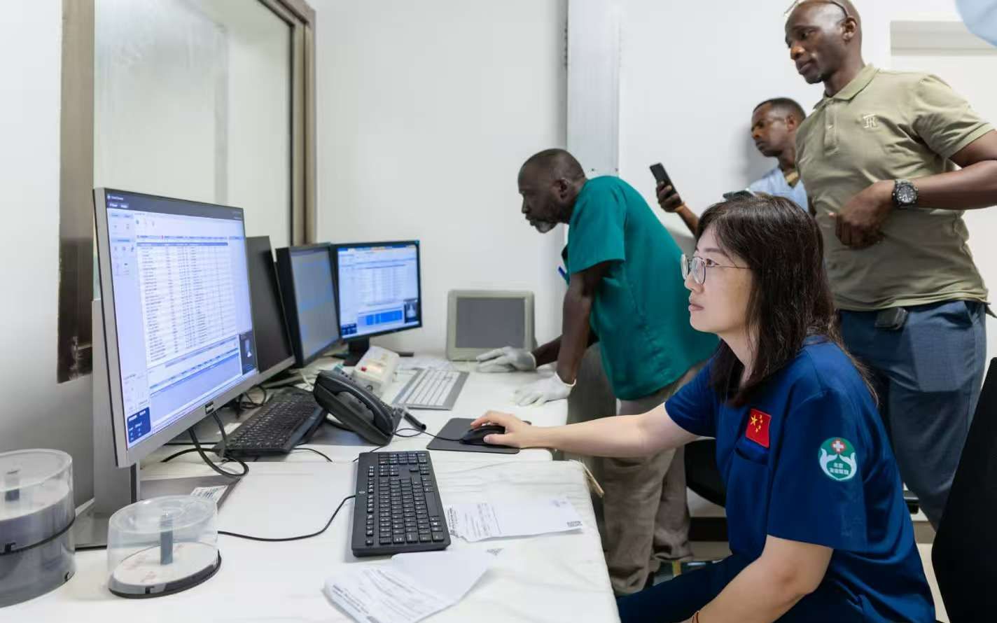 在几内亚我的工作要广一些,既要做影像诊断,也要兼顾扫描,还要组织培训、参加多学科协作和病例讨论,见到的不单是2D的黑白图像,而是一个个鲜活生动的患者,能看着他们从病情那么重到慢慢恢复,成就感和欣慰感要更直观一些。