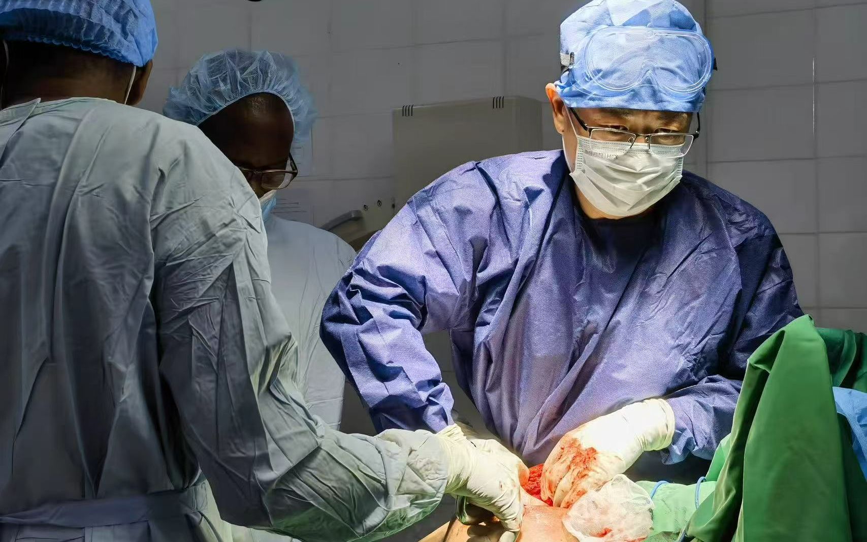 我在非洲最惊险的一次经历,是为一位骨折病人举着手电做手术。这名患者伤情严重,全身多发骨折,一侧的上臂、前臂、大腿、小腿都折了,大量失血,送到医院时已经是休克状态。医疗队出动了多学科抢救,稳定后收住院,调整了一段时间,我开始给他做手术。