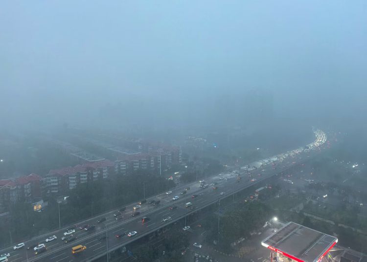 8月19日18时许,通州区,骤雨初歇,从长城国际眺望城市天际线。