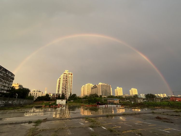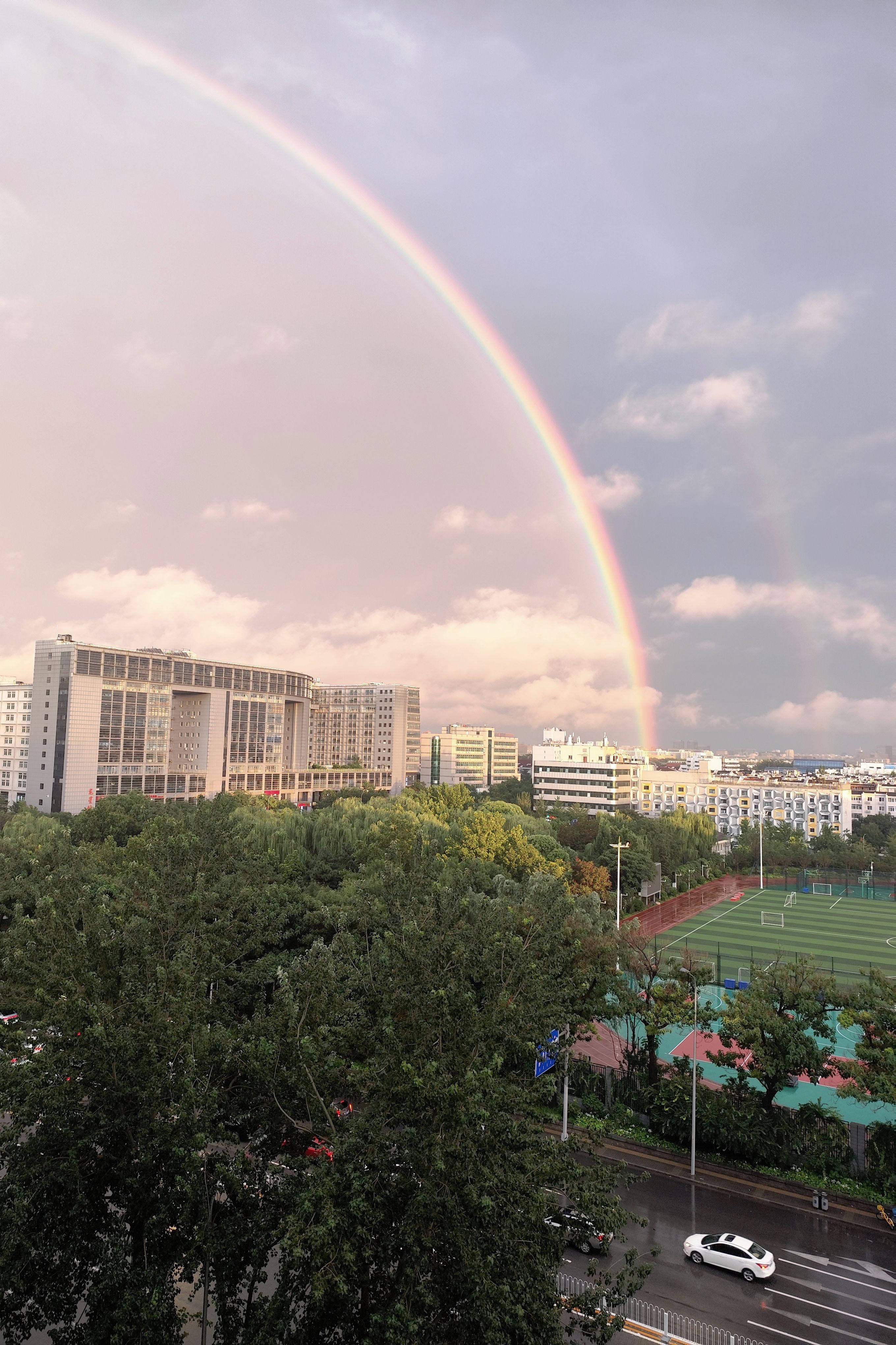 8月19日19时许,上地,两道彩虹悄然舒展。