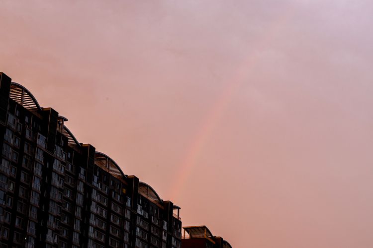 8月19日19时许,中关村东路,巨大的彩虹横贯天空。